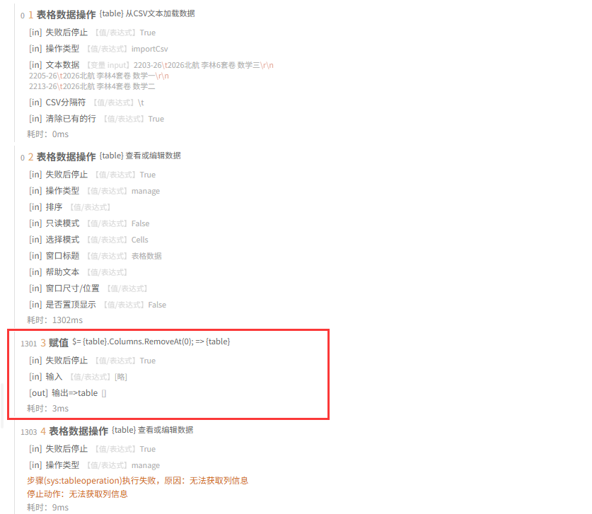 赋值步骤不要输出试试。 这个应该是直接修改表格对象的,表达式本身可能没有输出啥。