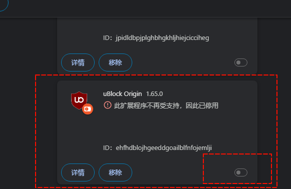 chrome140的 有些扩展不支持了,我在网上找了解决方案,在这里加上了一段代码,之后不受支持的清单,扩展可以正常运行了