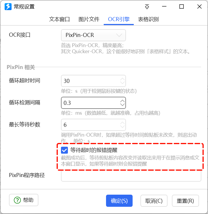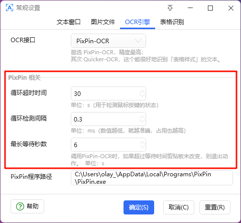 关系不大,默认的秒数是合理的,PixPin-OCR平均识别时间都不到1秒,这里设置了最长等待时间为6秒完全是绰绰有余