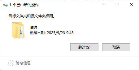 使用“移动到指定目录下(Windows)”会出现弹窗,但是手动剪切文件夹并粘贴并不会出现弹窗