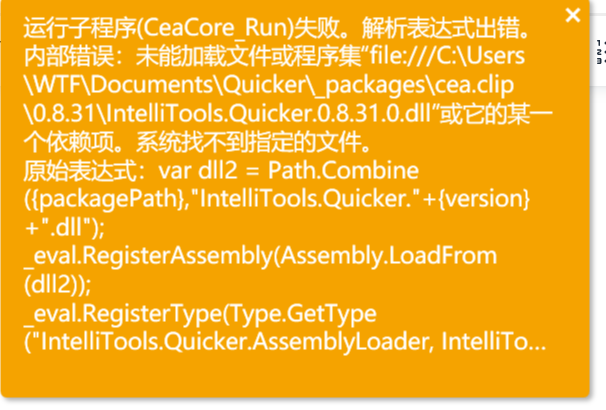 我也遇到了同样的问题,把Quicker更新到最新版本以后再重新安装这个动作就好了