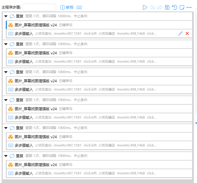 理想需求是:使用《找图》的方式,点击多种游戏道具(每一个子程序里是一种道具的图片),然后出售这个道具。