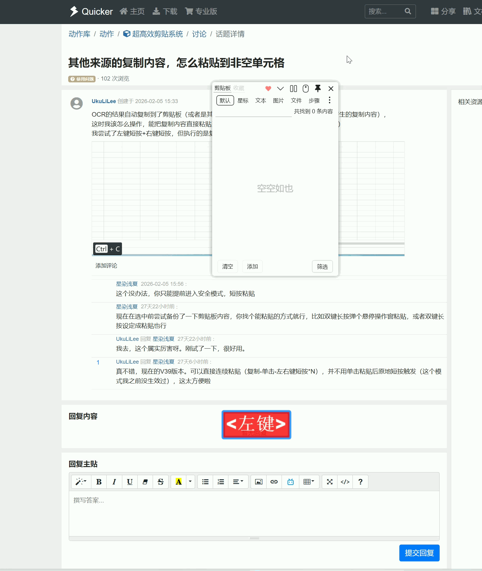 是在回复主贴的输入框那粘贴的(光标闪烁的地方)是的,第一次左右键短按没反应