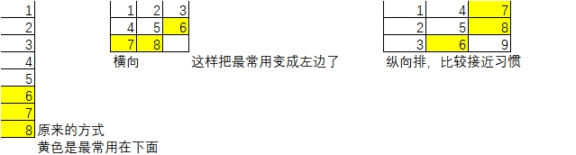 也行的。我是希望单列时候越够球的位置,移动距离最短。那多列的时候,也是同样。现有双列与三列会把常用放左边,距离最长。