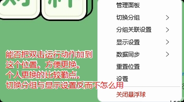 右键菜单外观设置,或者设置-基础设置,找到球与菜单间距修改。