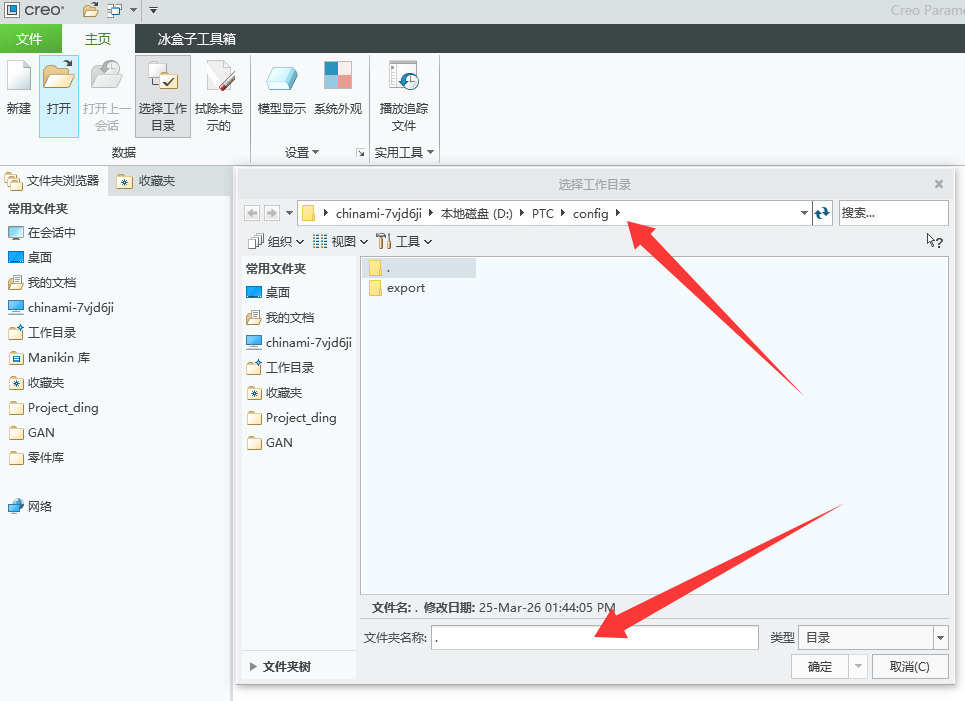 CREO设计在新建时,底部没有名称选择,只有顶部的路径,能否在顶部路径也可以跳转目录,非常感谢!!!