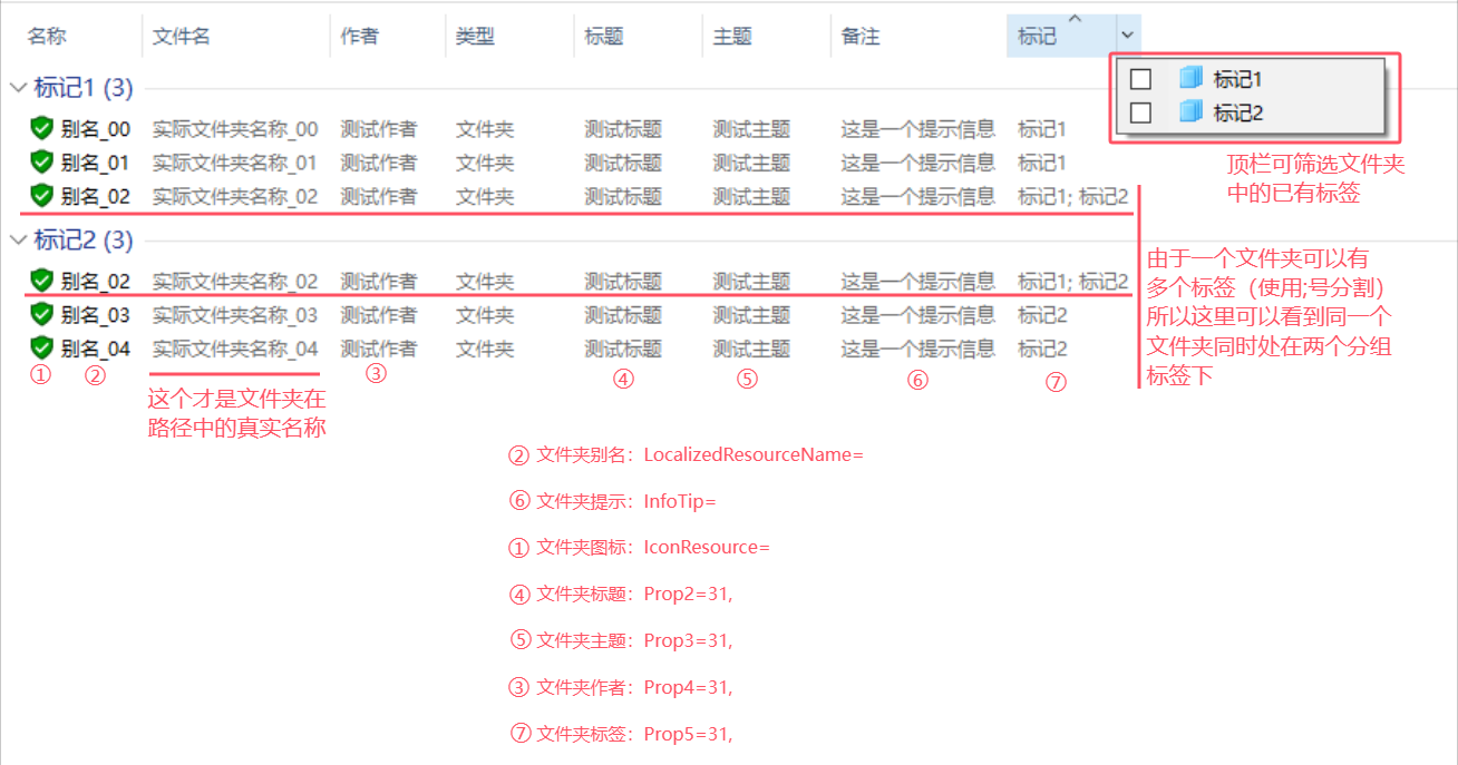 Prop5=31,文件夹标签A;文件夹标签B;文件夹标签C