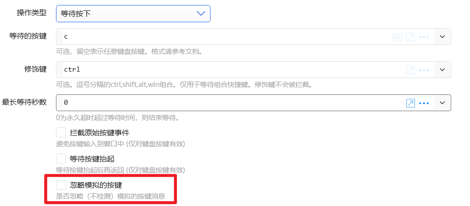 然后使用其他动作的模拟ctrl+c, 会发现无法触发这个等待ctrl+c, 这是为什么