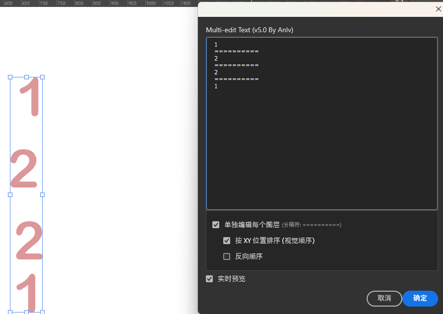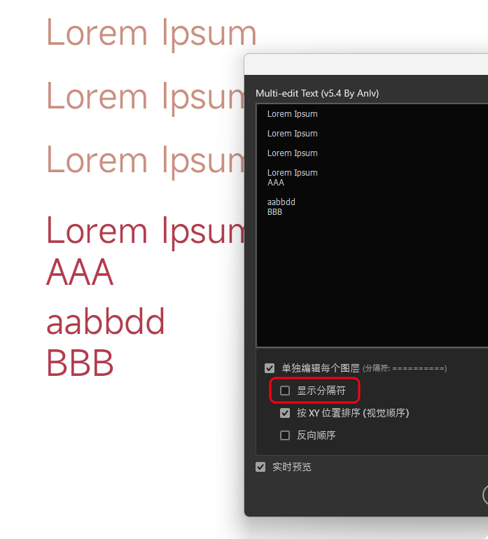 还是需要用到分隔符的,不然粘贴进去的时候没有办法判定是同一个文本图层内的换行,还是处于不同图层;现在更新增加了一个显示/隐藏分隔符的功能。