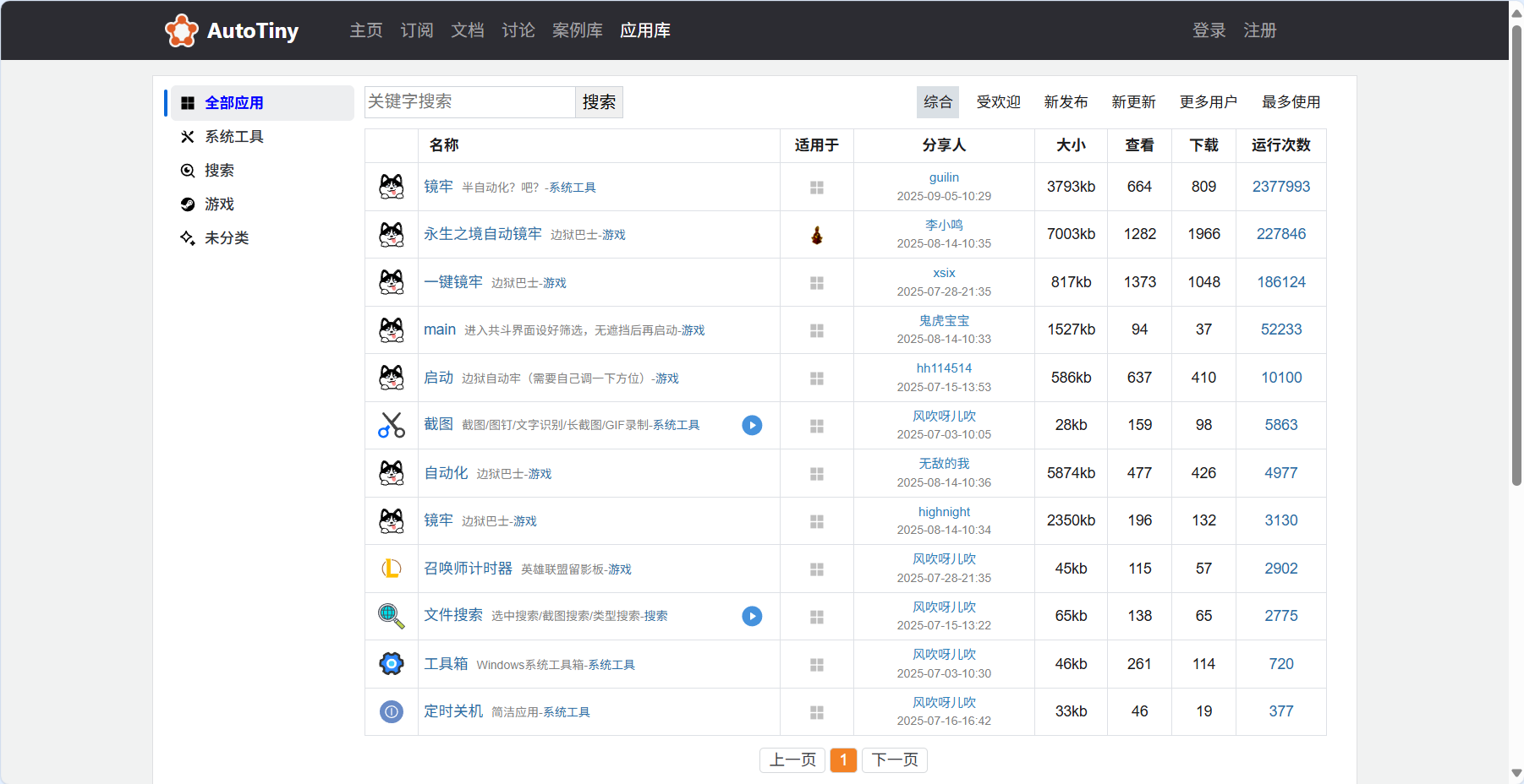 https://www.autotiny.cn/appsmarket?type=0&pageNumber=1&pageSize=25&search=%25&sortField=composite&targetUid=0