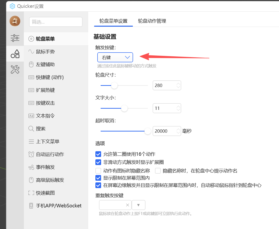 关于轮盘菜单设置中的触发按键能否增加一项组合快捷键触发
