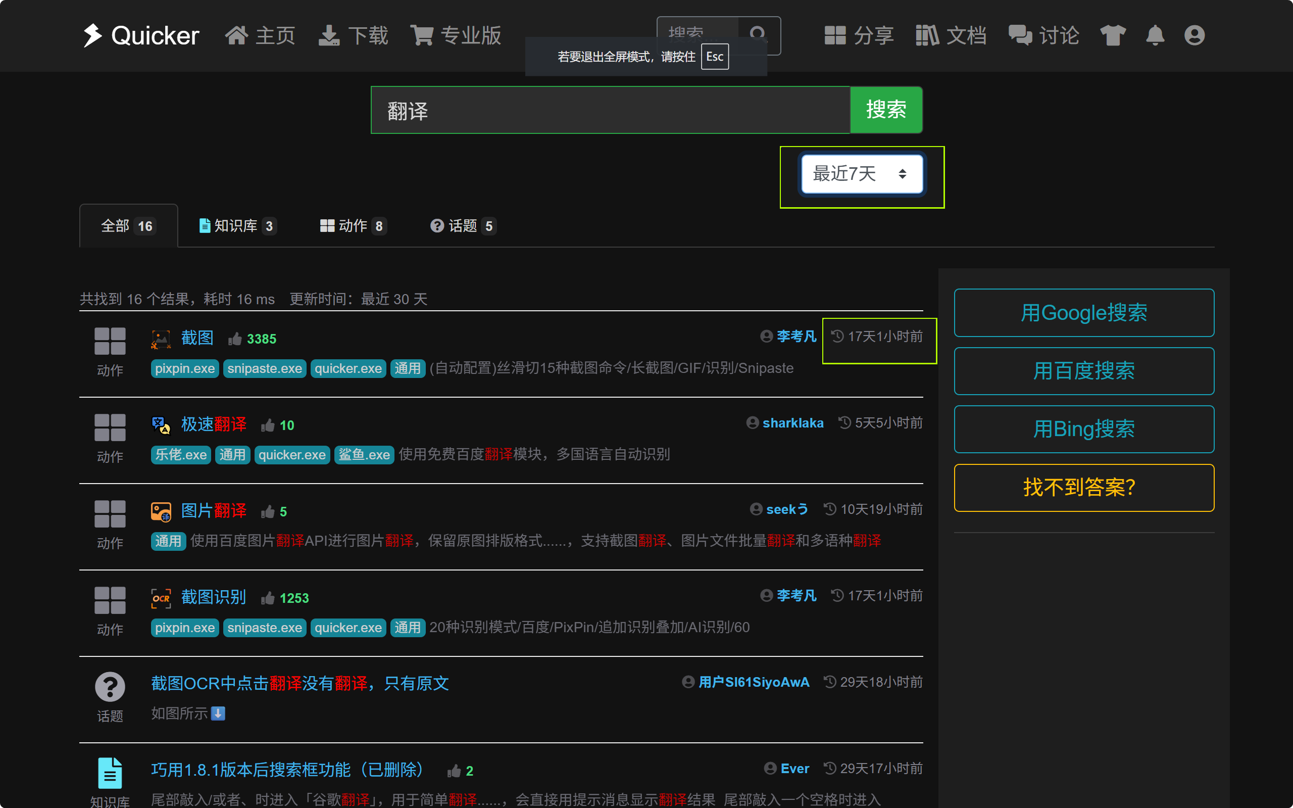 如图所示,我选的是最近 7 天的时间筛选内容,但出现的却是 7 天以外、甚至有 10 多天的内容。筛选功能不起任何作用,没有任何反应。