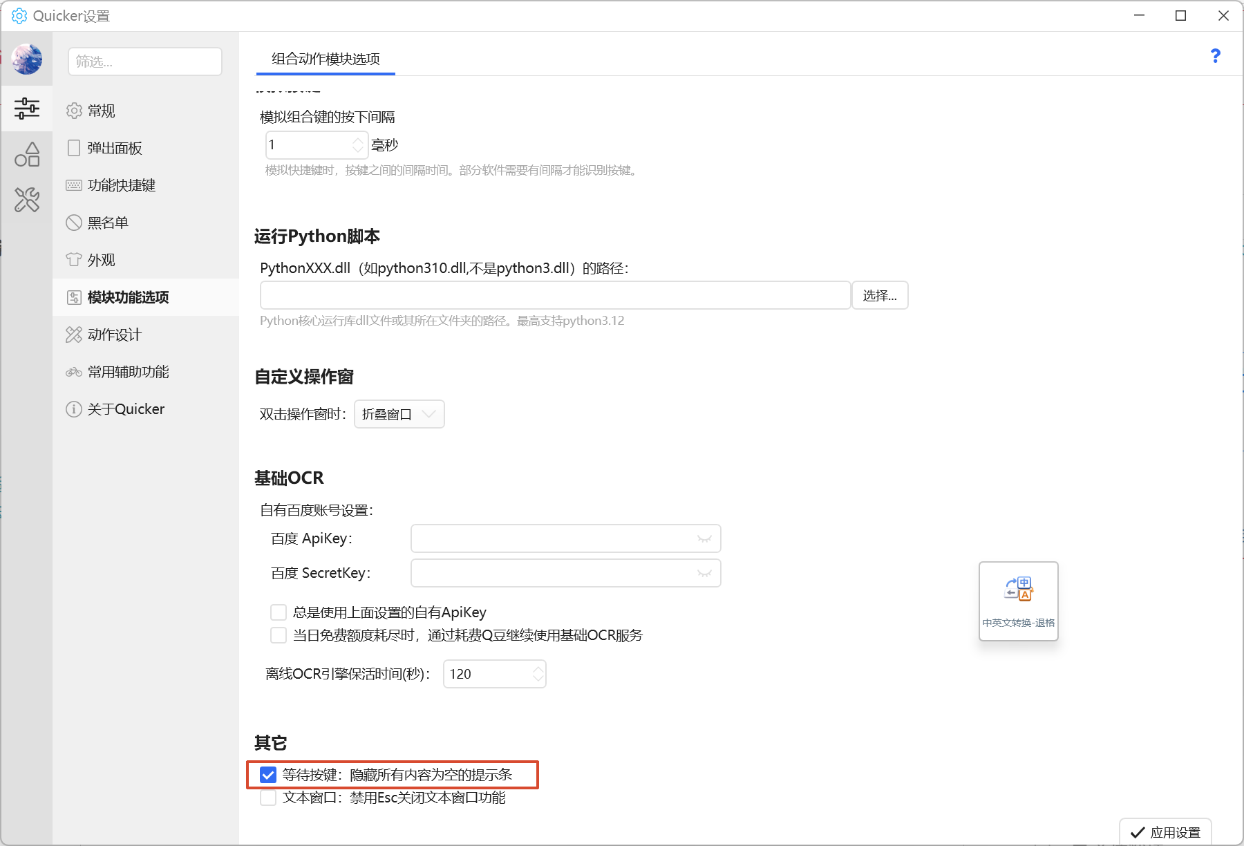 动作用了等待按键模块,设置勾选这项避免出现黑框。