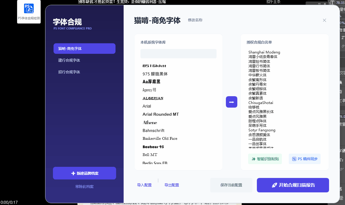 「检测当前Photoshop文档使用的字体是否在客户授权列表中。」