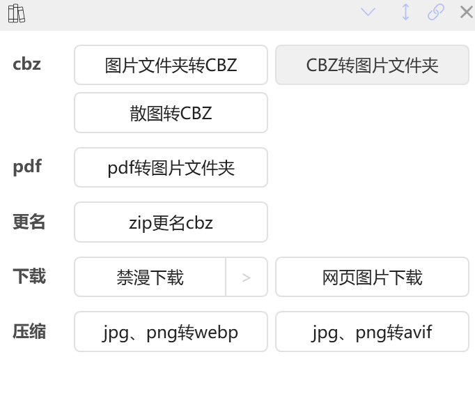 图片文件夹转cbz:选中一个或者多个图片文件夹,可以转为cbz格式