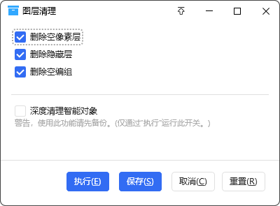 ~. 动作更名 “删除隐藏层” → “图层清理” ~. 增加深度清洁模式, 此模式不会每次都打开; 并且只有开启并通过"执行"才会运行. 深度清洁模式说明: 进入当前文档的每一个智能对象,清理掉你设定的图层,譬如空像素,隐藏图层,空组等.需要注意的是,锁定位置的图层也在清理范围内.只有完整锁定的图层会被保留. 此功能在有大型文档时,譬如文档中使用了很多AOV文件时可以有效释放空间,减少性能消耗;在清洁时, 会跳过矢量智能对象,避免调起Illustrator. 此功能处于beta阶段,虽然作者已经进行了一段时间测试,建议使用时先备份. |