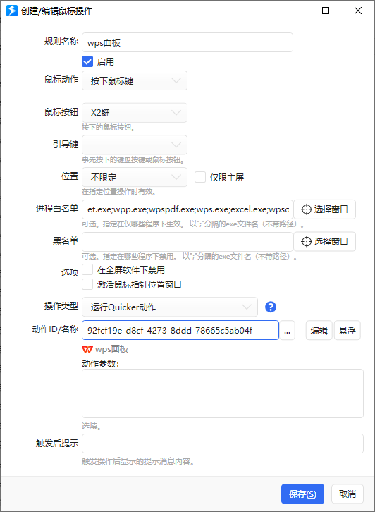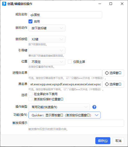 做两个打开Quicker面板的规则,例如我原本是X2打开面板,改为高级鼠标触发: