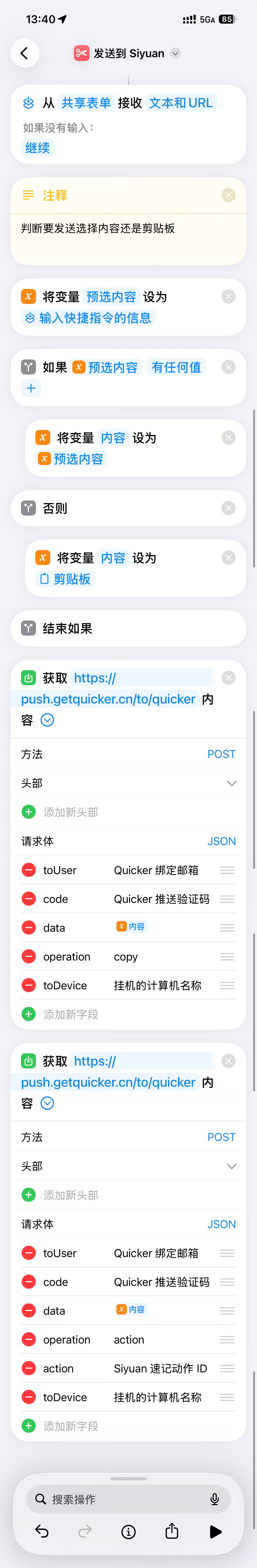 第二步:将Quicker长连接收到的剪贴板内容作为基础通过思源笔记API输入思源笔记对应位置