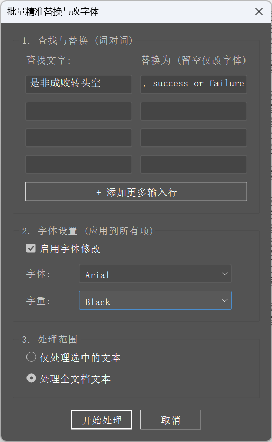 「文本/词语一键替换,独立的输入框列表,支持无限添加词对组合」