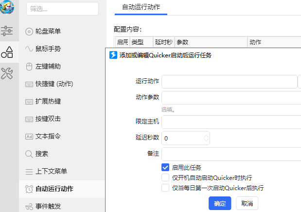 本动作需加入【自动运行动作-启动后运行】,或每次启动quicker后手动运行一次本动作