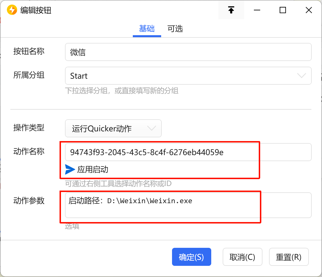 这个动作也自带一些启动动作的基础功能,但是不能自定义启动参数(程序参数、管理员运行、窗口最大化等),也不能实现“如果动作已启动,点击进行窗口跳转”等,建议两者配合使用。