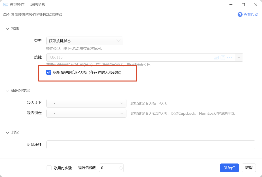 动作里不用按左键吧,你检测左键的实际按下状态就行了