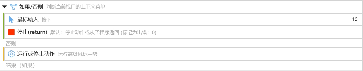 具体诉求: 希望能在组合动作中加入【禁用/启用鼠标手势和轮盘】的原生模块。这样用户就可以通过判定条件屏蔽掉特殊条件下冲突的手势轮盘动作。并且不会影响同场景不冲突的条件下的使用