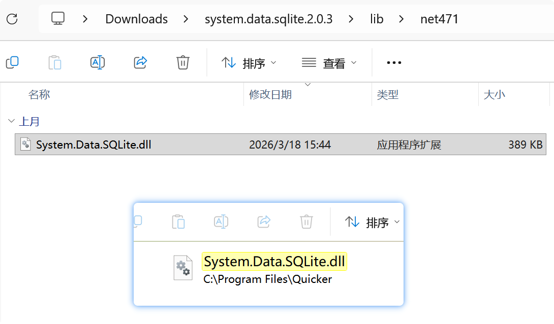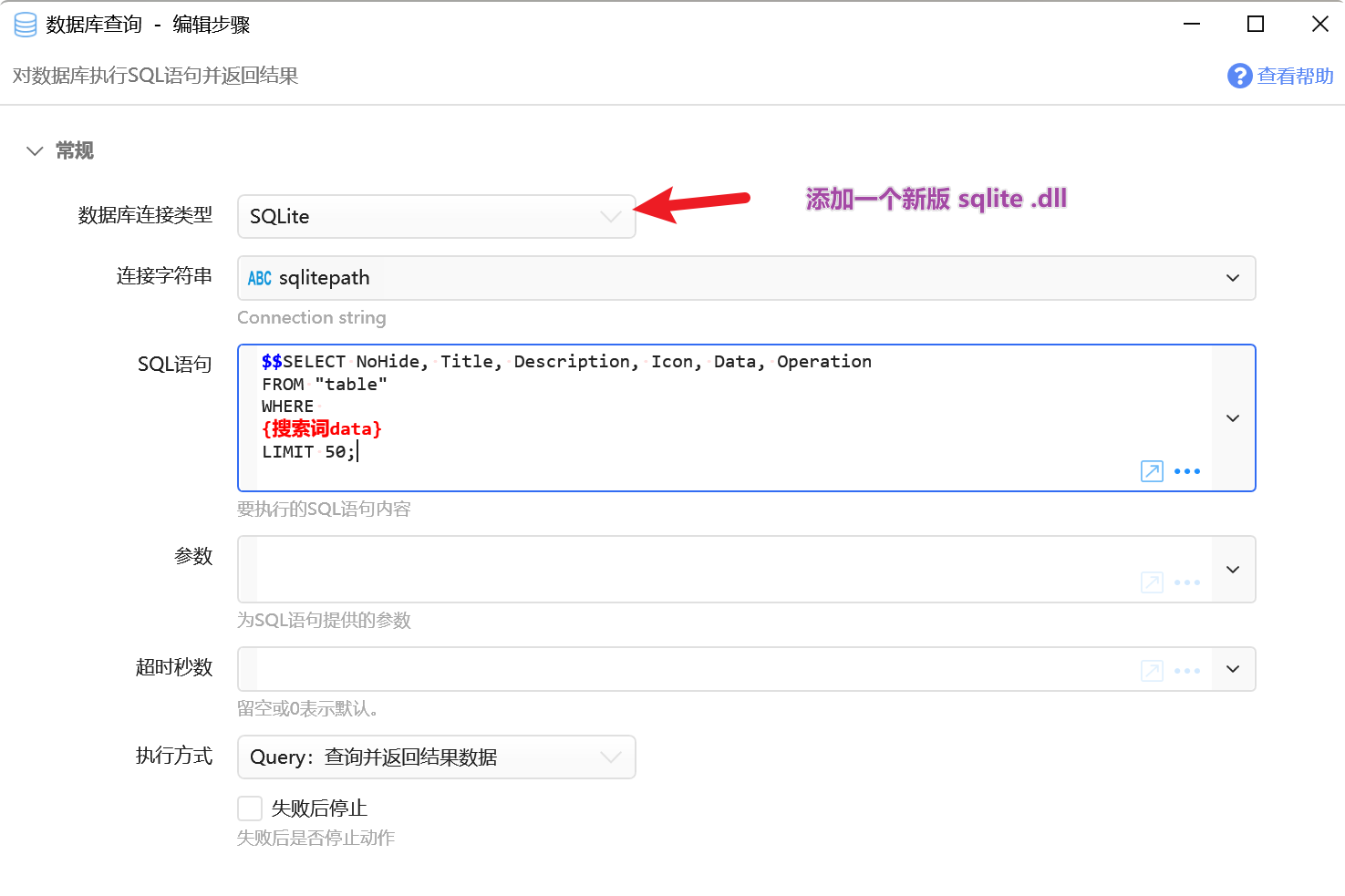 那你的库能增加一个选项吗? 就是可以让用户在动作中 编辑选择新sqlite,而你的Quicker软件就用旧的,两者不冲突.