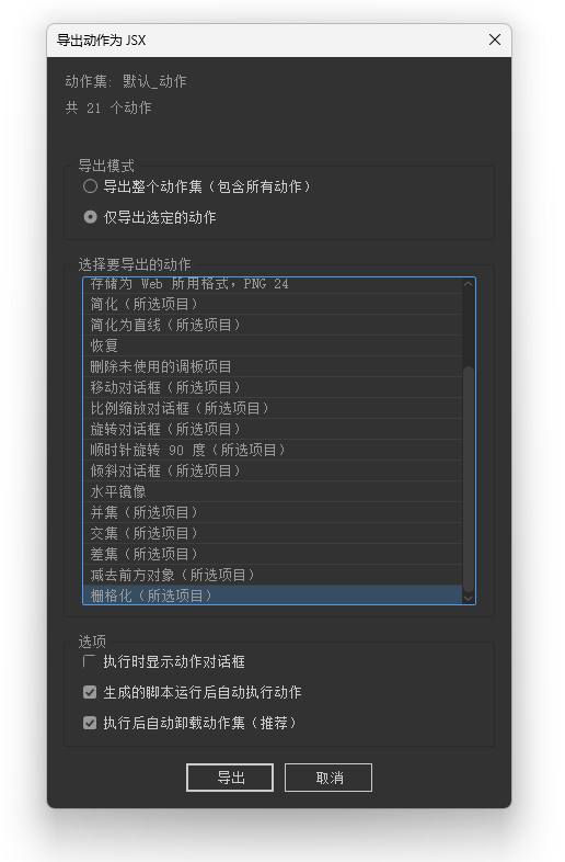 「Illustrator 的 .aia 动作文件,转 .jsx 文件。」